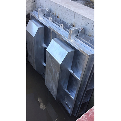 浮箱拍門、管道壓力損失鑄鐵防潮門、拍門、浮箱拍門較小,被認(rèn)為是普通拍門的替代品安裝鋼壩閘門,可以設(shè)定門套的比重,大多為焊件。普遍應(yīng)用于河流沿岸、市政排水管出口。材料主要是FRP和鑄鐵。